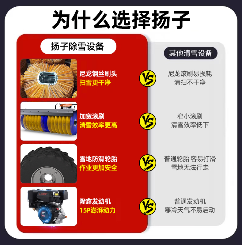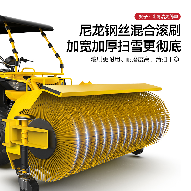 揚子YZ-SXJ003駕駛式掃雪機加寬加厚掃雪更徹底,耐磨尼龍鋼絲混合滾刷持久更耐用,可調(diào)節(jié)檔位操作更簡單