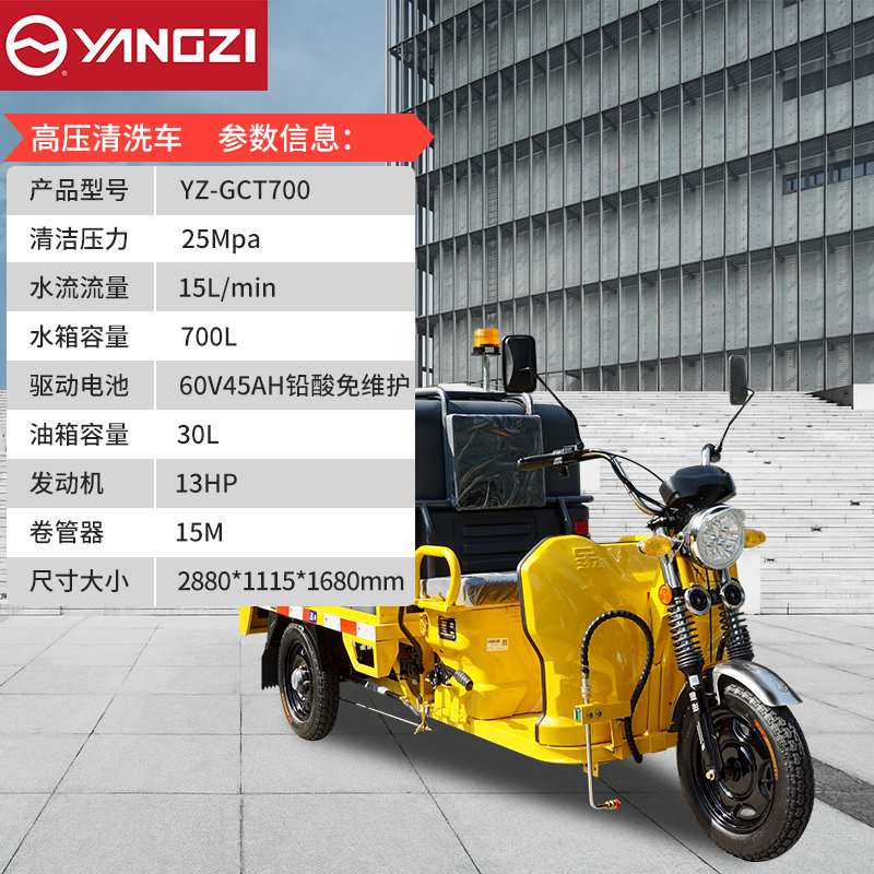 揚(yáng)子YZ-GCT700高壓清洗車適合各種場所,700L大容量水箱持續(xù)作業(yè)