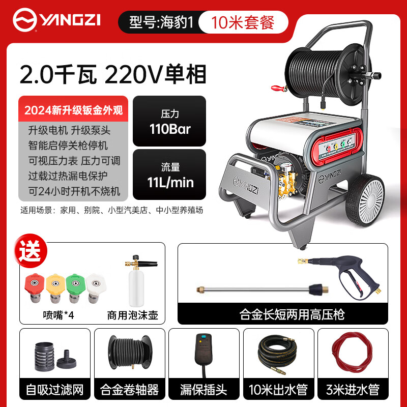 揚(yáng)子海豹洗車機(jī)洗車高壓水槍高壓清洗機(jī)大功率工業(yè)洗車水槍220v洗車店養(yǎng)殖場洗車泵,商用級銅制感應(yīng)電機(jī)澎湃動力三重防護(hù),2000W-5500W商用風(fēng)冷感應(yīng)電機(jī),智能調(diào)壓閥輕松掌握精準(zhǔn)水壓。