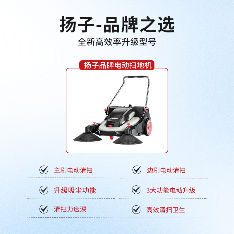 揚子YZ-S2pro手推式電動掃地機全新升級電力驅(qū)動清潔效率每小時可達(dá)5250平方米,工廠、車間、物業(yè)等道路清潔一推即凈。
