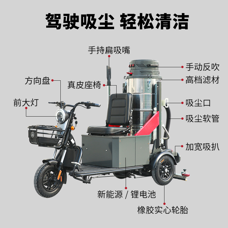 揚子YZ-ZL100F駕駛式吸塵車,雙桶電動吸塵靈活方便,2200W大功率輕松吸納灰塵、鐵屑、砂石、碎渣紙屑等垃圾