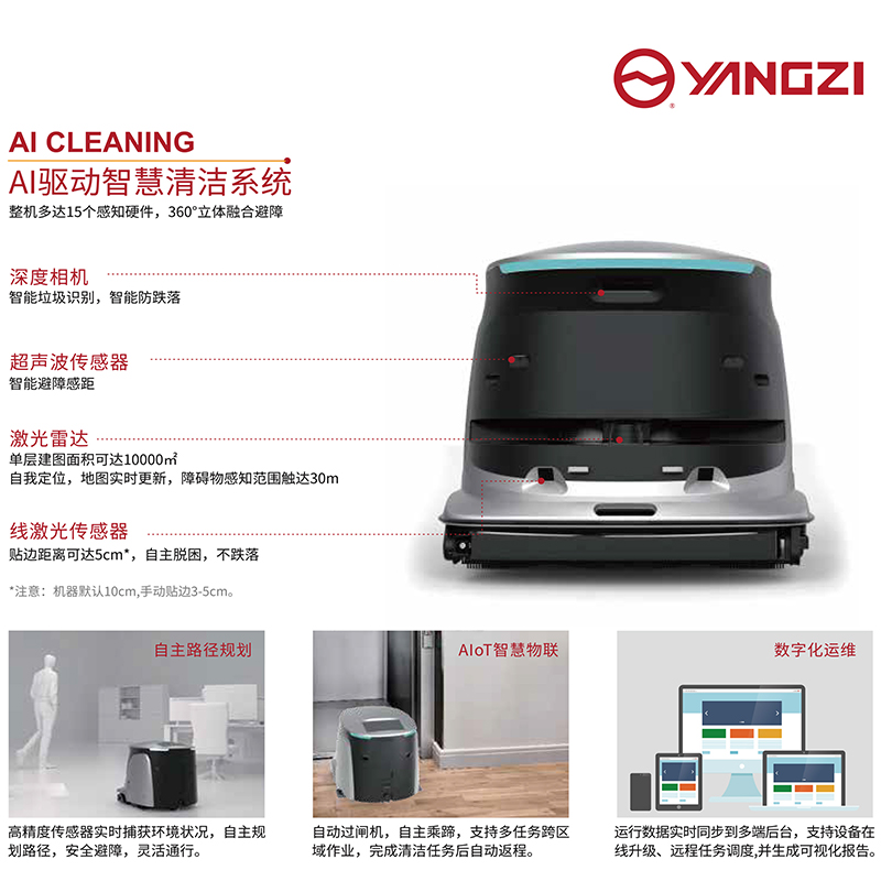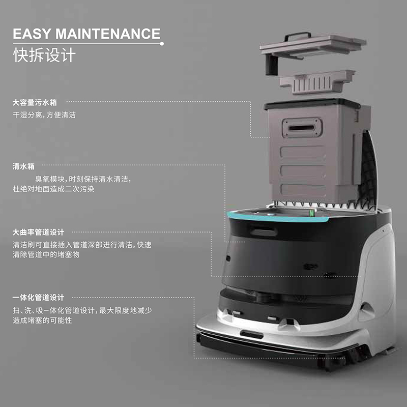 功能強(qiáng)大,掃地、吸塵、洗地、塵推、消毒、自清潔六大清潔工序,高度700mm,高度僅550mm,極致貼邊邊界自動(dòng)識別,進(jìn)口靜音材質(zhì)噪音低質(zhì)55db