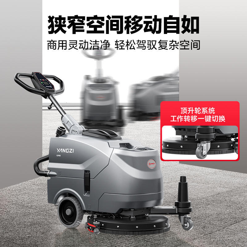 揚(yáng)子YZ-X1pro小型商用洗地機(jī),機(jī)身寬度僅45cm,可在商超餐廳等場(chǎng)景內(nèi)使用,貼墻清潔輕松使用清潔無(wú)死角,176半包圍靈動(dòng)吸水扒,秒干不留痕轉(zhuǎn)彎不漏水,頂升輪一鍵升降,操作手感隨心掌控